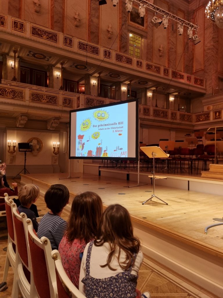 Aktuelles Das geheimnisvolle Riff Die Kinder der 2e haben an einem zweiteiligen Workshop teilgenommen.Zuerst haben sie die Geschichte “Das geheimnisvolle Riff” anhand von Bildkarten und Klangmotivengemeinsam entwickelt und illustriert.Bei einem weiteren Termin im Konzerthaus wurde die Geschichte einem kleinen Publikum vorgetragen und von einem Organisten mit der Orgel zum Klingen gebracht.