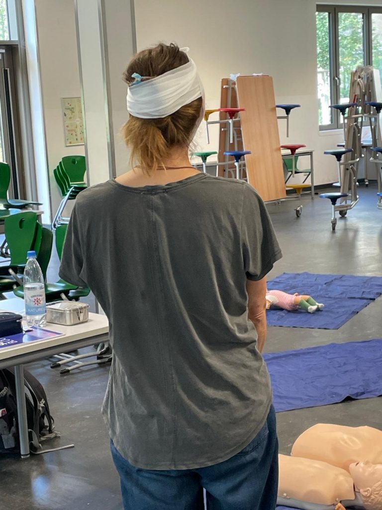 Aktuelles DRK-Kurs Am 04.09.2025 bereiteten wir uns im Rahmen der Ersten Hilfe auf das neue Schuljahr vor. Etwa 20 Kolleginnen und Kollegen probten am Modell und an sich selbst wie man richtig, schnell und zuverlässig Erste Hilfe leistet.